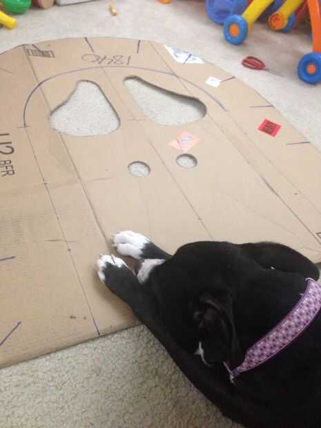 - Un error que cometí fue que la puerta no estaba lo suficientemente alta como para despejar la cabeza de mi hija. Así que mi puerta tuvo que cortarse un poco extra después de ser ensamblados (y no se ve tan buena como podría). El paseo del usuario (niño o quien sea) a través de la pared antes del montaje final (o un trozo de cartón para medirlas contra la altura de la puerta si vas a compilar esto como una sorpresa.