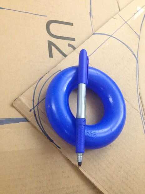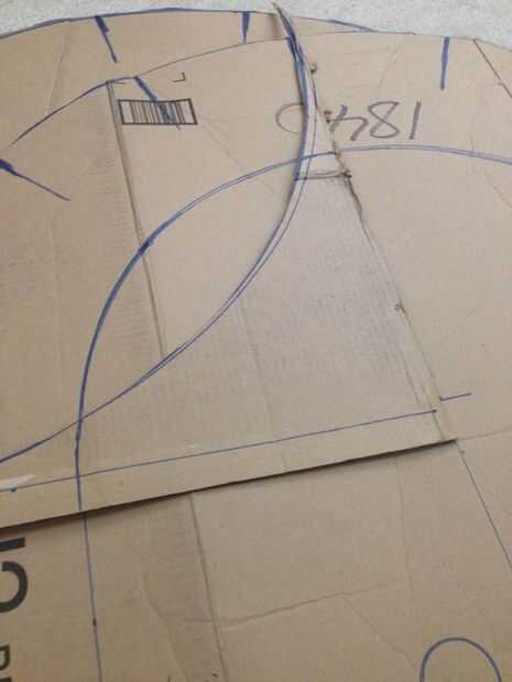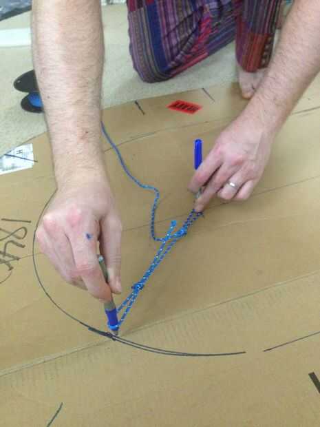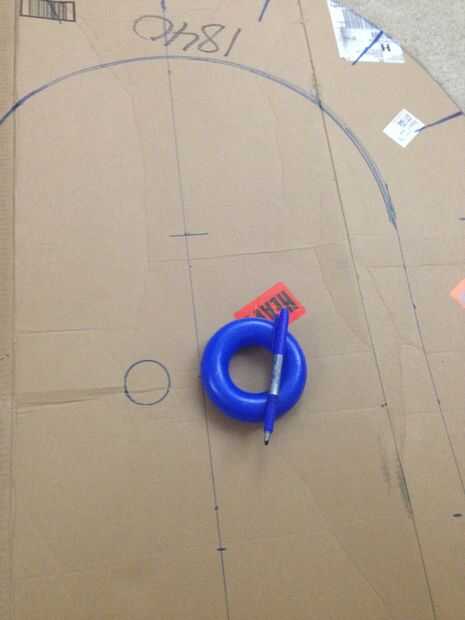 - Utilizando el mismo centro que fue utilizado para el arco del techo, use un pedazo de cartón, cinta o cadena para sostener su maquinilla de afeitar o marcador de 1.5 unidades lejos del centro. Comprobar que se cruzan las líneas de bisagra antes de dibujar el arco.