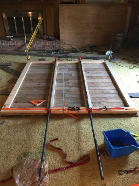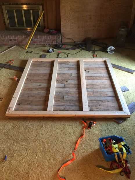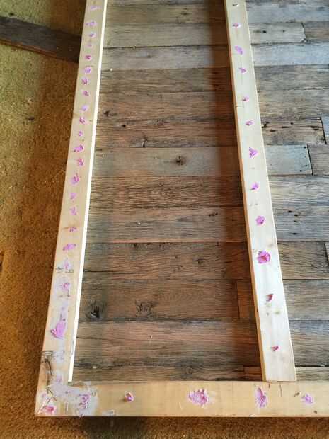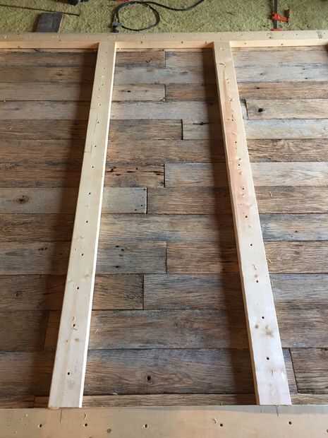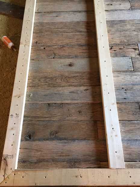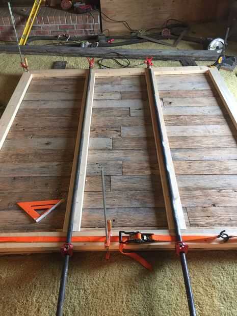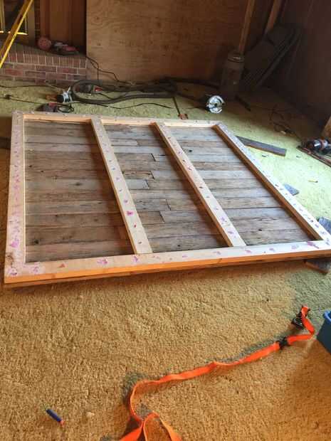 llegó el momento de construir el armazón de soporte en la parte posterior. Optamos por utilizar 2 x 4 "s en lugar de la valla de madera para que la puerta sería más fuerte y más grueso para montajes/ruedas de tubo. Usé un patrón simple de contorno cuadrado con dos listones verticales incluso a través del medio. Me biscuited las esquinas y dos piezas de mediados para mantener el conjunto del marco juntos. Luego perforar agujeros guía alrededor de toda la trama, asegurándose de alinear por lo menos dos tornillos por tablero de los lados verticales de la estructura corriente. Yo entonces sujete ambos lados del agujero que estaba taladrando para que la Junta debajo fue presionada en el 2 x 4 antes de que enroscada en él. Todos los tornillos avellanados para que pudiera spackle los agujeros y liso hacia fuera de la estructura de soporte en la parte posterior. Llené todos los agujeros y luego lijar el marco fuera con grano 220.