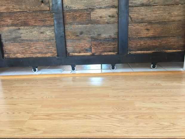 La puerta general tira bastante bien, un problema que es la tierra que la puerta descanse en el azulejo, hay surcos de lechada que deben rodar las ruedas. También, al azar, es un sistema de ventilación que nadie podía hacer nada bien en el medio. Aparte de esas dos cosas, la puerta funciona muy bien y proporciona excelente privacidad y cancelación de sonido para ambos cuartos.