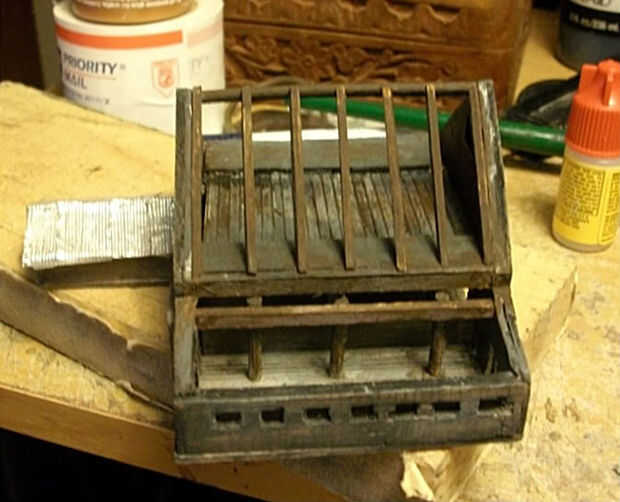 Aquí el granero de atrás es todo junto y unido al galpón principal, todas las vigas fueron cortadas de balsa con