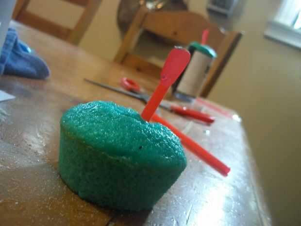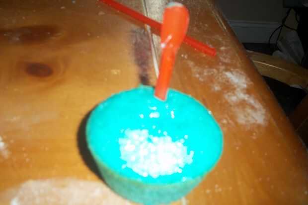 Estos adorables cupcakes se pueden hacer añadiendo la mitad de una botella de sabor de granizado y un poco más de harina a la receta de su Magdalena preferida. La taza está hecha de un pequeño vaso de plástico y una etiqueta que hice en Word.  Tengo la paja de un restaurante local, que tuvieron la amabilidad suficiente para donar 12 pajas a la caridad. (es nombre de mi mamá, por cierto) Fueron cortados a tamaño y palillo en los cupcakes.