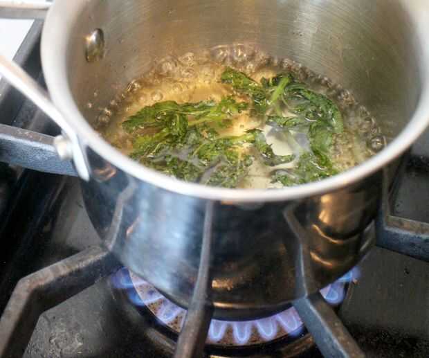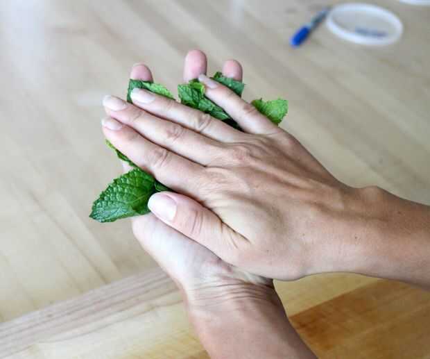 Colocar las hojas en un lado y aplaudir hacia abajo en las hojas con la otra varias veces. Se trata de una forma sencilla y rápida para liberar el sabor.