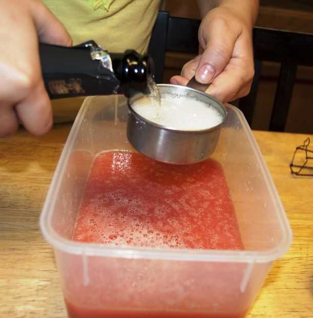 Estos granizados vegano son una alternativa muy sana y deliciosa para los granizados que comprar en las tiendas. El color rojo viene de sandía, tintes no artificiales y hay sólo cuatro ingredientes a esta receta.Vamos a empezar!Paso 1: Ingredientes y