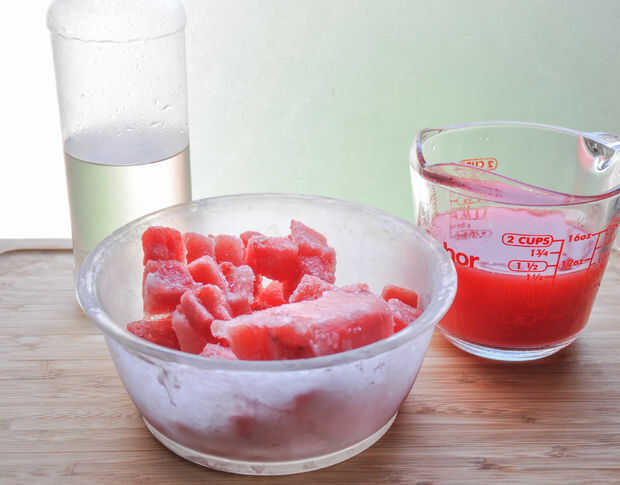 Estos granizados vegano son una alternativa muy sana y deliciosa para los granizados que comprar en las tiendas. El color rojo viene de sandía, tintes no artificiales y hay sólo cuatro ingredientes a esta receta.Vamos a empezar!Paso 1: Ingredientes y