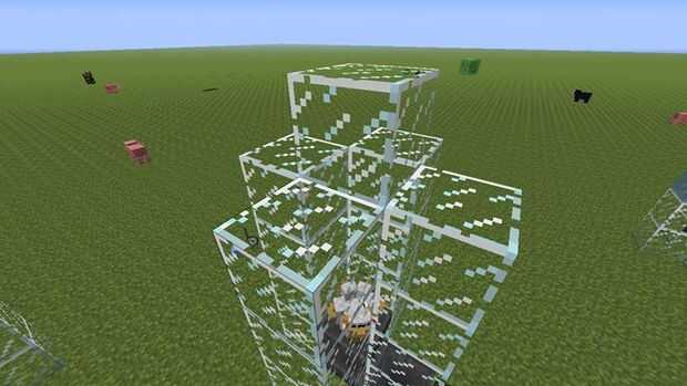 Ahora subir 3 más en ese bloque de vidrio que coloca sobre la tolva hasta que esté al mismo nivel con los otros. Si estás en creativo ahora sus huevos de spawn y generó el pollo en la abertura de cristal que está por encima de la tolva si estás en supervivencia salir sus semillas o llevar lo que elegiste y construir una escalera hasta la abertura y plomo en sólo asegúrese de que usted no caiga cuadra pulgadas hasta la apertura.