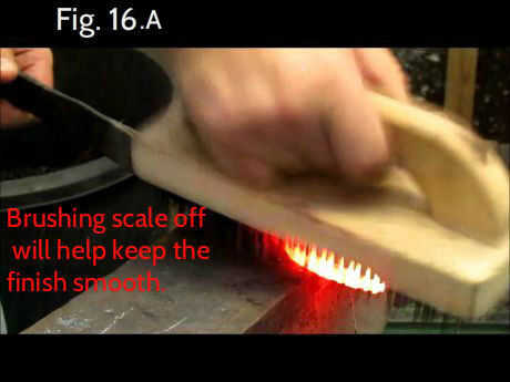 Medida que se acerca a lo acabado es una buena idea para la escala de la pieza y el yunque antes de que golpee (Figura 16.A). Esto evitará que la pieza lisa no forjando sobre la basura que crea imperfecciones.