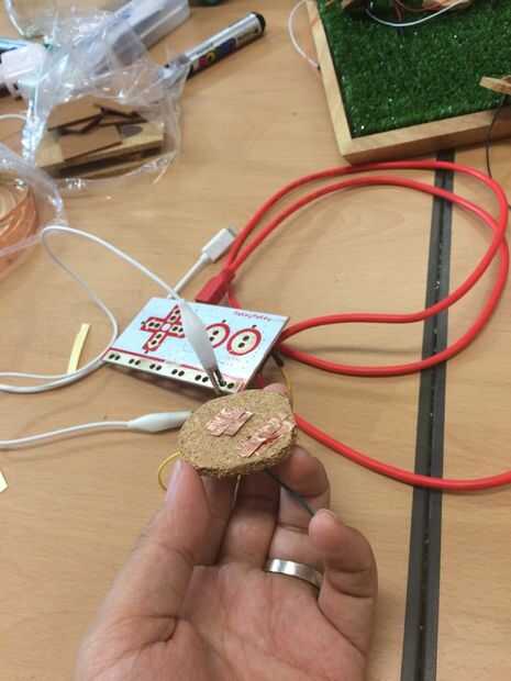 1. Conecte uno con junta makey makey, en pin D5, D4, D3, D2, D1, D0 y A5.