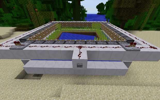 Agregar bloques alrededor de los pistones por lo que podemos colocar el redstone. Luego coloque el redstone y algunos repetidores de redstone para keepp la señal que va. Sólo tiene que añadir un botón en algún lugar y luego listo!
