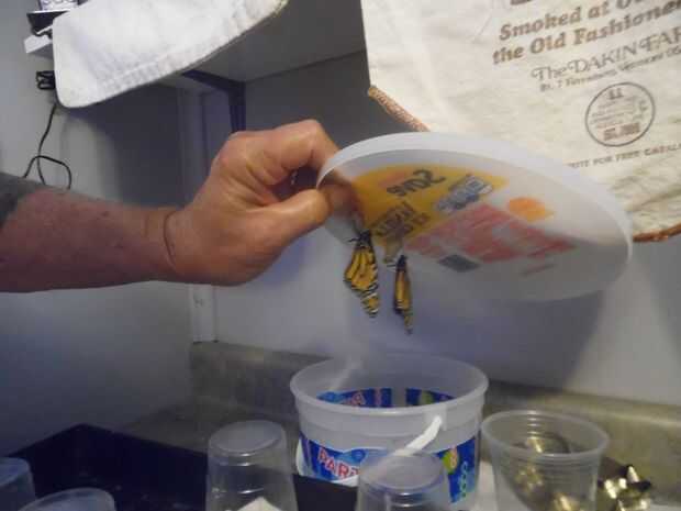 Cuando las mariposas emergen de la crisálida, las alas son arrugadas. Necesitan alrededor de 3 horas para sus alas en seco y ampliar. Si por alguna razón no permanecer atado a la parte superior de la Copa y caen en el líquido que se expulsa cuando se abre la crisálida, sus alas no se extienden completamente y no puede volar. La mariposa sobre las flores tenía un problema y lo mantuvo por unos días.