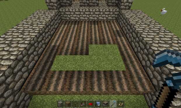 en este instructable va a ser mostrar cómo hacer una granja de trigo!Paso 1: El agua En primer lugar, hacer un área 9 x 9, he esbozado mi área de trabajo sobre el terreno la hierba. Luego empuje el bloque medio y rellenar con agua.Paso 2: Azada la ti