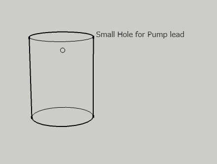 Perfore un pequeño agujero en la parte superior de la lata más grande para alimentar el cable de alimentación de la bomba hacia fuera del depósito