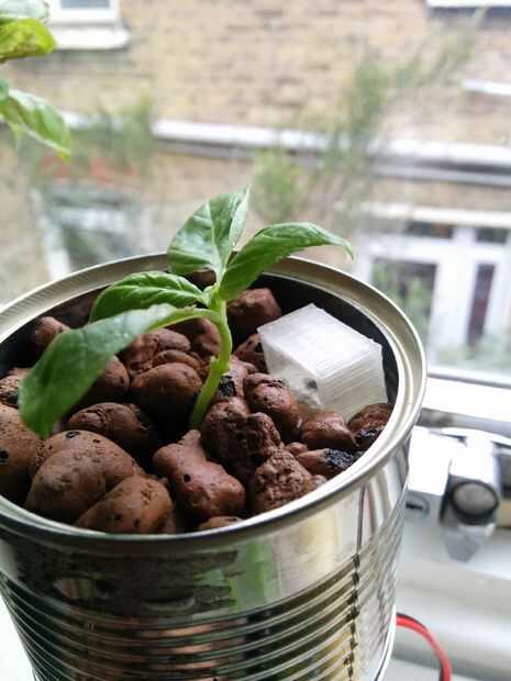 Llene el depósito inferior con agua y nutrientes - no van más allá de los agujeros que ha perforado en el lado de la lata ;)