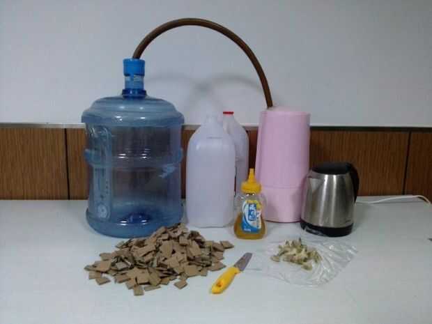 Para el dispositivo de uso de cartón, que hemos cortadas en virutas más pequeñas, y sumergirlo en una solución de miel líquida acuáticos. Para procesar el tablero de tarjeta, deben ser esterilizados para matar esporas no deseadas, como las esporas de moho. Por lo tanto utilizamos agua caliente hirviendo para remojar los barcos de cartón por un tiempo. También usamos agua hirviendo para limpiar todos los aparatos. Este paso es vital, porque cada vez que hay cualquier molde en las setas, es tóxico y no comestibles más.