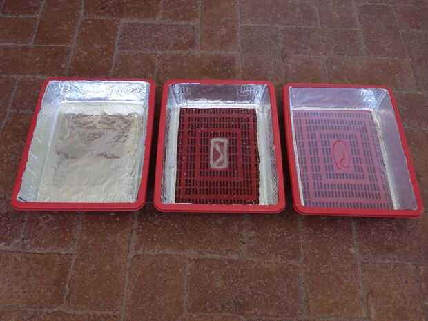 Para satisfacer las necesidades de cada tipo de canasta, que construyendo tres tipos diferentes de bandejas. Todos ellos tendrán papel de aluminio en los laterales, como ni los escarabajos ni gusanos pueden subir superficies resbaladizas.