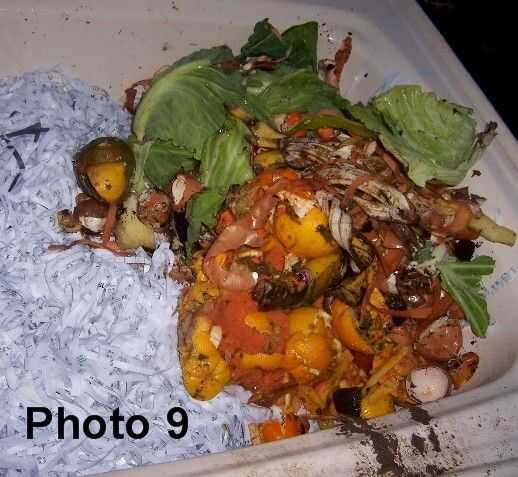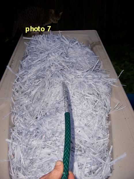 Llene la bañera a la parte superior con papel picado(foto 6). Esto sólo es necesario para iniciar la granja. (más más adelante a la hora de la cosecha)
