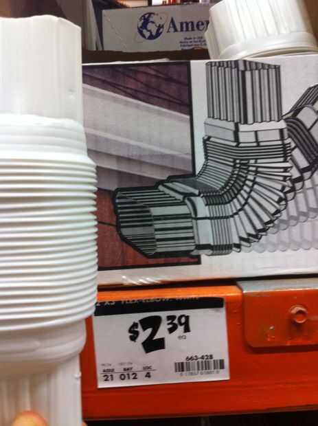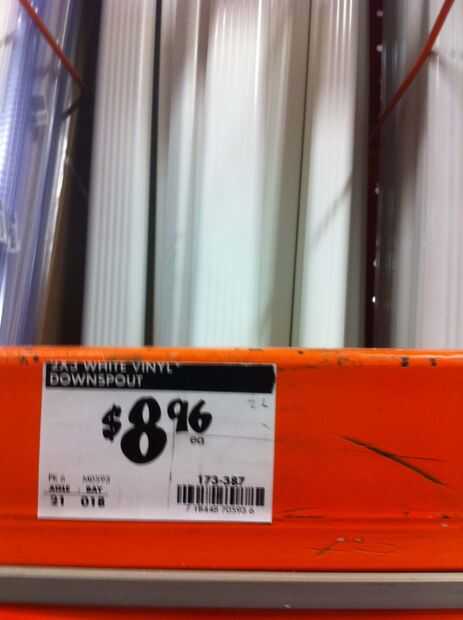 Creo que fue un 10 pies lluvia Master 2 pulg x 3 en. Bajante de vinilo... cortar en 3 trozos largos X2 con un total de 6 piezas