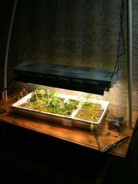 2 pies y 4 pies T5 flourecent luces de algun tio en craigslist para 50 dólares!... los 2 pies solo es como 150... y 4 pies es como 149 (lo sé porque tuve que comprar otra) nota también que se ha cambiado el diseño original por una escalera de diseño... Esto maximiza la cantidad de luz que reciben las plantas y la cantidad de crecimiento permitido por el sistema para arriba