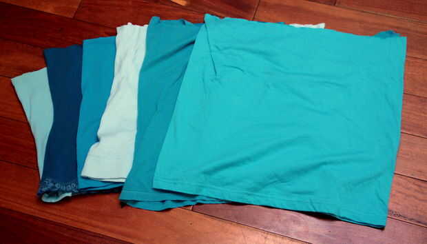 Cortar camisetas todo recto a través, apenas debajo de las sisas, formando tubos.
