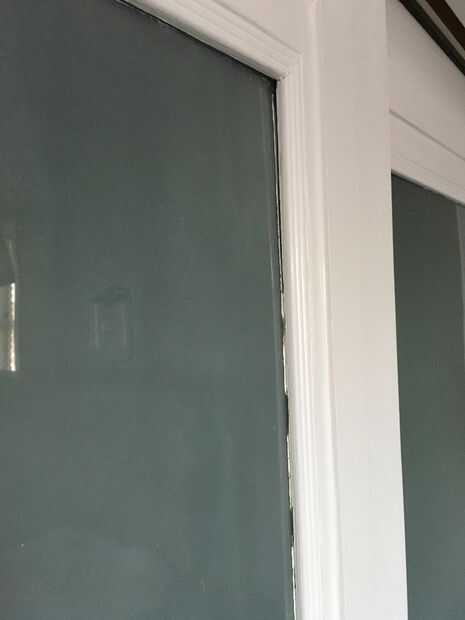 Después de conseguir las puertas encendido (y disculpas a mí mismo para todas las malas palabras que dije) decidí que la brecha entre el vidrio y el marco decorativo parecía inacabado. Añadí un poco de masilla y luego raspa para acabar hacia fuera. Parecía mucho mejor!