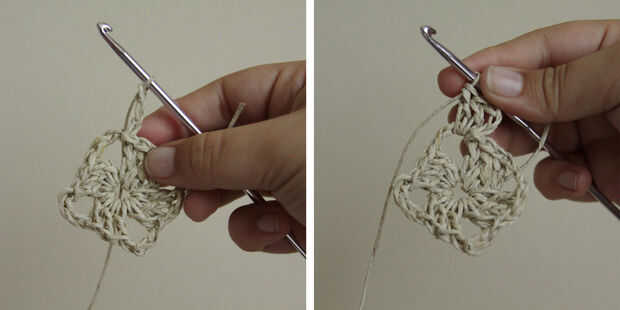 Granny Square cáñamo posavasos (8 / 10 paso)