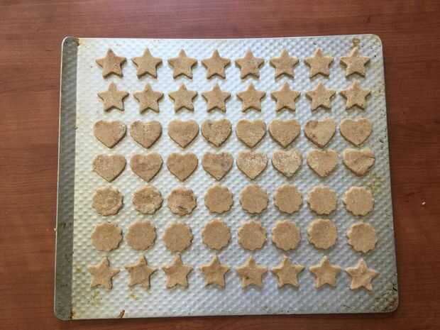 mi boxer cruzado es alérgica al gluten y absolutamente ama a estas delicias. El único problema es que necesita tu perro tiene comerlas rápidamente ya que después de 2-3 semanas empiezan a ir moldly. La receta hace 2 cacerolas de trata el tamaño que h