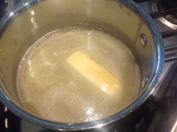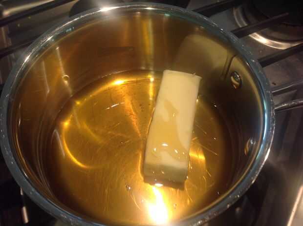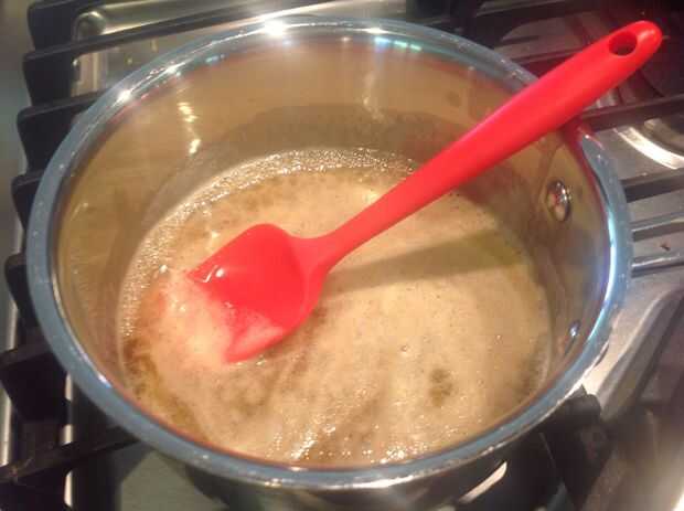 Derretir la mantequilla y la miel. No tiene que estar super caliente, derretido y combinado. Apagar el fuego y agregar la vainilla.