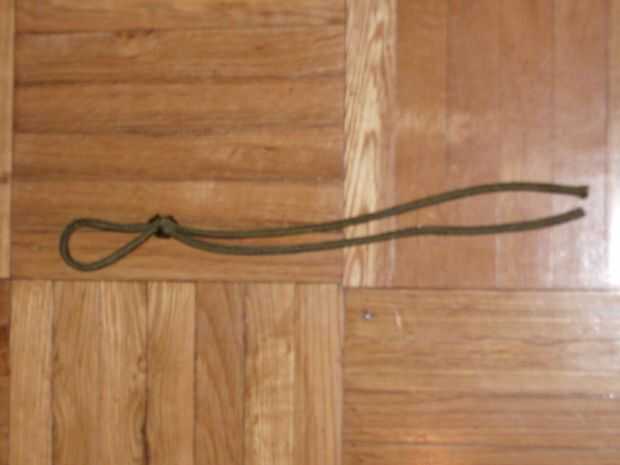Hacer un lazo en el centro. En primer lugar, incluso hasta los extremos sueltos. Ver la segunda imagen para cómo hacer un nudo de lazo. Hacer un pequeño bucle si vas a poner esto en un botón de la camisa; que sea más grande si vas a lazo a través de su LCE/LBE.