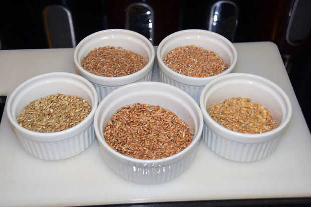 Estoy usando una mezcla de centeno y farro, espelta, trigo, trigo rojo duro. Si usted está planeando sobre el uso de esta harina para algo que requiere mucha fuerza de gluten (pan, por ejemplo), tendrá que limitar sus opciones de trigo no a 10-15% del total, en lugar del 60% utilizo aquí. La mayor parte de este lote particular puede nunca hacer a la etapa de harina, como nos gusta mezclarlo con acero corte avena para el desayuno.