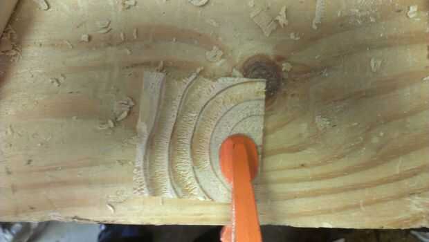 Una vez han elegido un pedazo, amarrarla a un escritorio y empezar a tallar surcos entre el grano. Elegí hacer una ranura poco profunda de un lado - usted puede obtener algunos resultados interesantes si usted va más profundo y en ambos lados. Experimento!