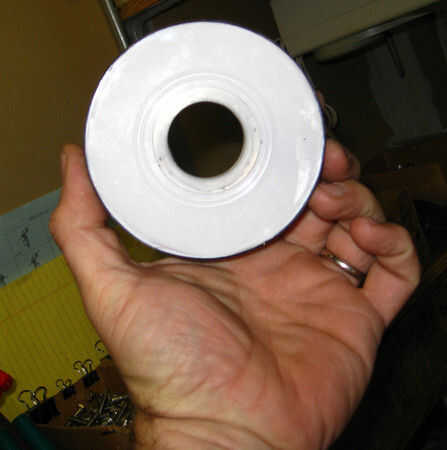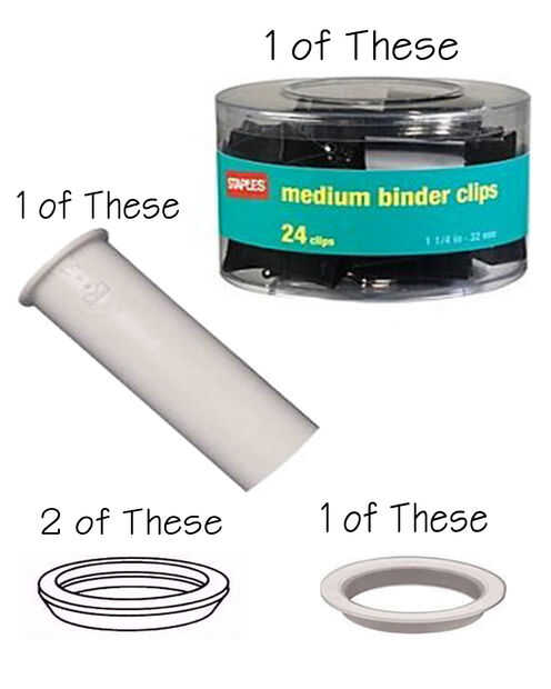 Tomé un envase de anillas (la mediana clips) de Staples, un 1-1/2" OD x 6" de largo blanco cola PVC pedazo para el lavamanos