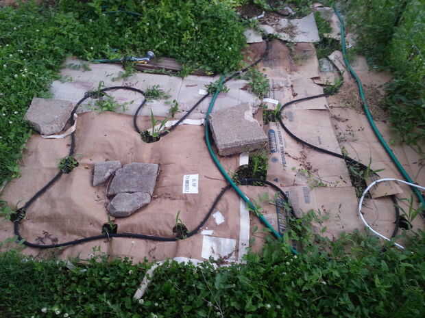 he utilizado un montón de estas presionado enseñorean las mangueras y la cartulina en mi jardín. El madurador mangueras nees para estar muy cerca de las plantas para ser eficientes y nees para quedarse. El cartón es reducir el desmalezado entre surcos. Después de thr cartón es grapas de abajo su cubierto con hierba cortada para mi jardín no se ve super trashy.