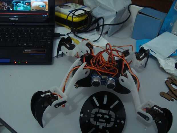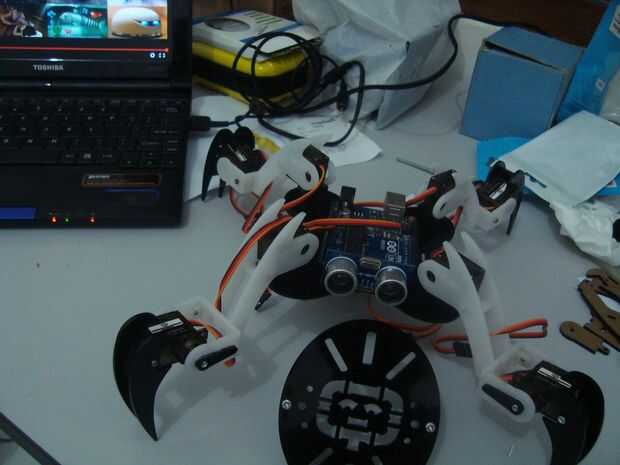 Preparar el arduino Uno, protector del sensor, sensor ultrasónico y el puente de alambre para el sensor. el arduino uno en el medio de robot de cuerpo en el cuerpo es agujero del tornillo ya mismo tamaño y posición con la placa de arduino uno atornillar, de attact sensor shield arduino en el superior arduino uno, asegúrese de que está conectado el pin todos, attact 4pieces feame t0 mujer puente alambre enemigo rojo vcc pin sensor negro para tierra blanca para eco y amarillo para desencadenar. Use un pegamento caliente para colocado el sensor de ultrasonidos en el frente medio de robot el sensor fungtion ojos.