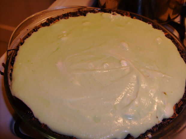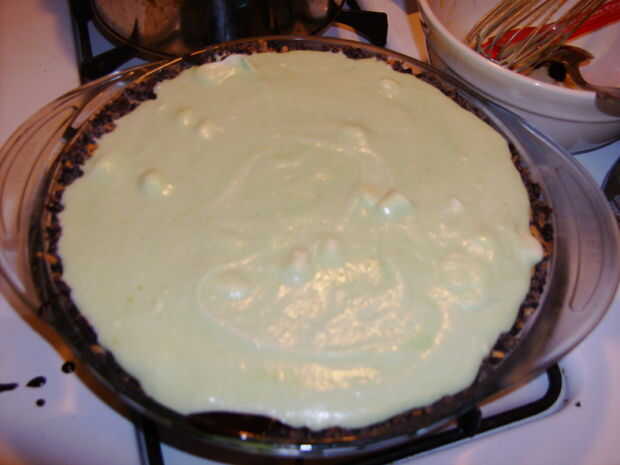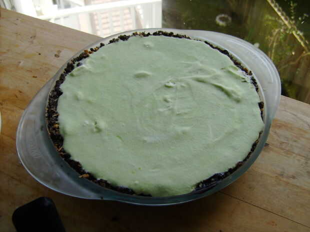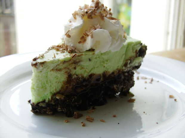 Saltamontes pastel es tradicionalmente hecho en las cocinas del sur y un pastel congelado dulce inspirado en el cóctel Grasshopper. Con crema de menta y crema de cacao, este pastel es fresco, refrescante y verde. Justo a tiempo para el día de San Patricio!