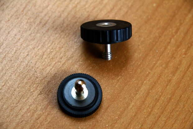 Alternativamente al perno, encontré (hmmm interesante lo que puedes encontrar en sus cajas de correo no deseados) algunos restos trípode rápido Conecte los pernos, y creo que uno es de un soporte de flash o-o-o-l-d. (buscar en tus cosas, estoy seguro de que tienes algo)