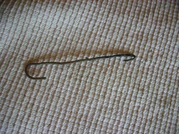 Primero hay unir las gomitas a la correa del paso 4. Dado los agujeros hice en el trozo de correa hijo pequeños, deberé ayudarme con un ganchito de alambre para pasar las banditas de goma por ellos. Una vez pasada por el agujero la punta de un par de ellas, paso la otra punta por adentro de sí misma, para enlazarlas al trozo de correa.