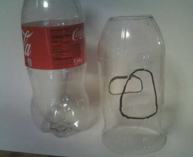 En primer lugar, tijera la parte inferior de los dos litros de la botella, para que se sienta sin bamboleo, sobre el vidrio.