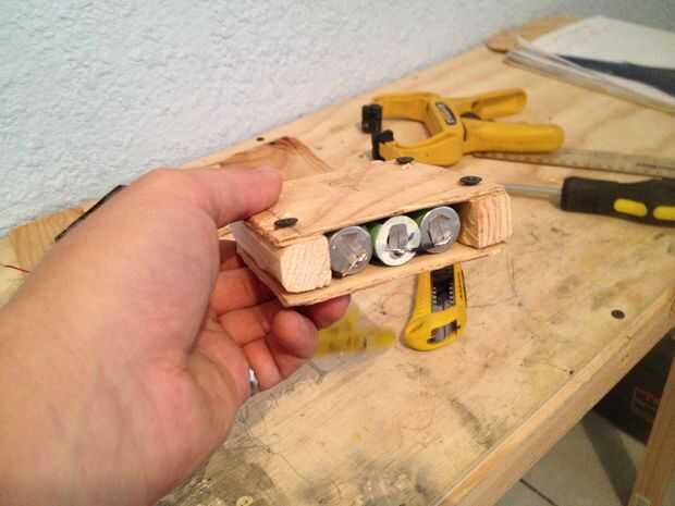 Primero debe deslizar las baterías en el caso. Para mí fue difícil ya que era un ajuste muy apretado. Las baterías deben ser muy ajustadas en el caso. Si su caso es demasiado grande debe poner poco acolchado en el interior para evitar que las baterías de moverse en el caso de caucho.
