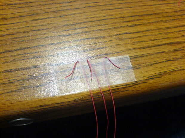 Tomar los extremos libres y con cinta adhesiva a la mesa firmemente (mantenerlos separados un poco).