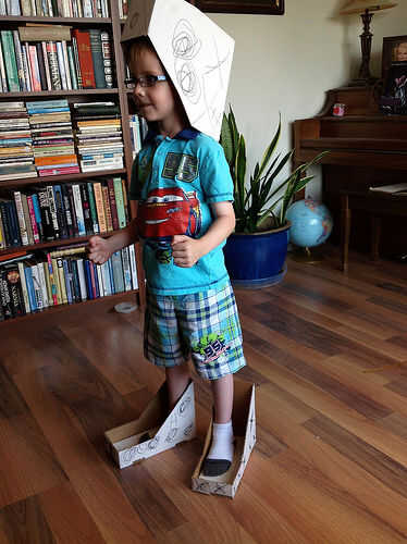 En las dos últimas fotos se dará cuenta que incluso la parte superior que le cortamos encontró un uso. Mi hija pensó cama de su peluche, mi hijo pensaba zapatos de robot, y pensé que bin de piezas pequeñas. Usos son aparentemente un montón.