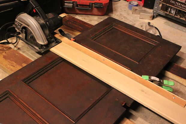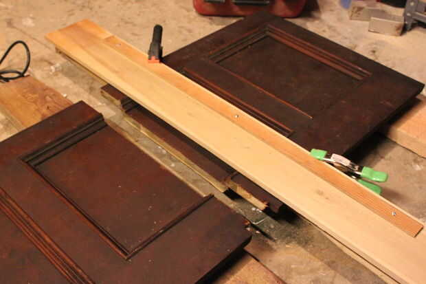 • Ajuste la guía lateral para hacer un corte verticalmente hacia abajo el centro del tablero de la rodilla y fijarlo con la abrazadera hacia abajo.