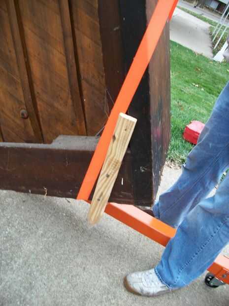 • Mueva el elevador hasta el final bajo del piano y correa para arriba como antes. No necesitará poner otro bloque porque la correa no quiere que salga. Entonces, levantarlo hasta que las ruedas del piano tocan la cama del camión.