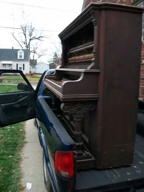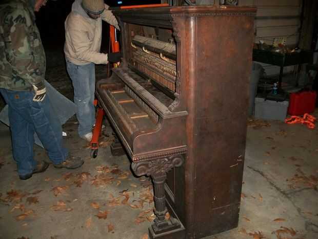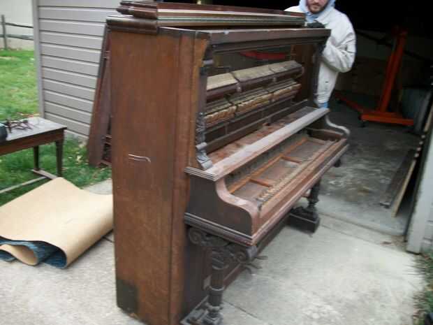• Una vez que tengas todas las herramientas necesitan, ir a donde se encuentra el piano y conseguirlo hacia fuera donde usted puede trabajar en él. Eliminar algunos de los principales paneles en la parte delantera para el transporte (para que no sople en la carretera) después de rodar hacia fuera (debe ser en ruedas pequeñas)