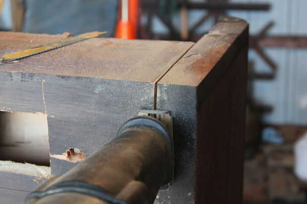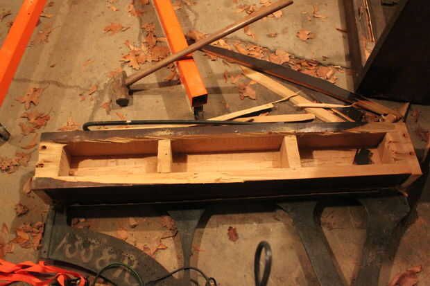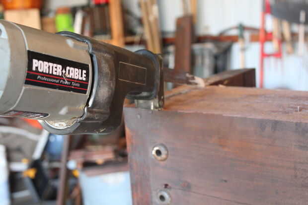 • Ahora utilice la sierra sable para cortar el refuerzo superior a lo largo de los lados del arpa (ver foto)