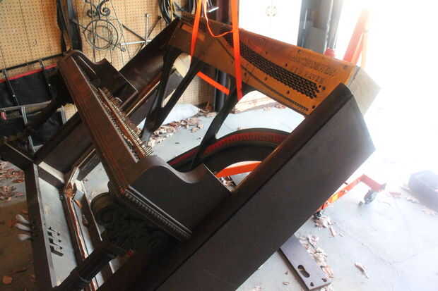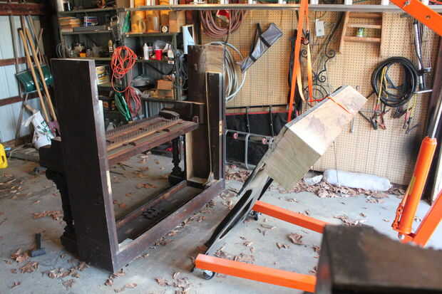 • Use su motor elevador o tus amigos fornidos para ayudar a elevar el arpa del resto del piano. Un prybar en la parte inferior ayudó a desalojar para mí.
