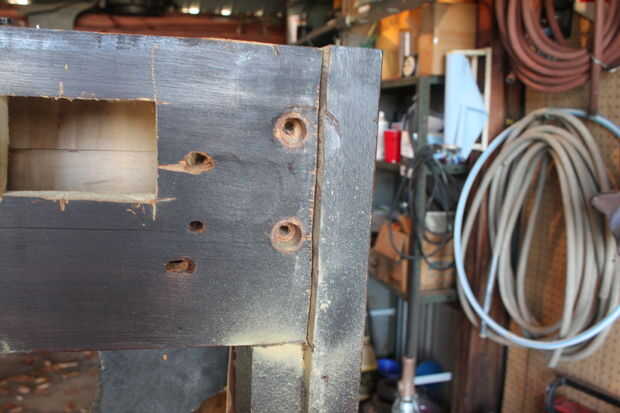 • Luego algo golpeó con un martillo para que se sienta mejor acerca de perder todo ese tiempo en tomar las clavijas de afinación cuando lo único que necesitaba era un par de cortes rápidos (* no es realmente necesario) (se le deba quitar 2 del templar de los pernos para un paso posterior)