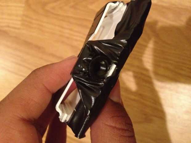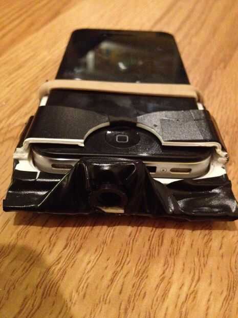Se trata de un adaptador de la placa que el iphone se basa en el envoltorio. Este proyecto también utiliza cinta aislante, una banda de caucho, pegamento caliente y un 1/4" tornillo hembra (* término?) de una vieja webcam. Si desea hacer un "adaptador" similar para el teléfono, no tiene ningún webcams viejas ahí, podría encontrar un tornillo de ajuste en su ferretería local.