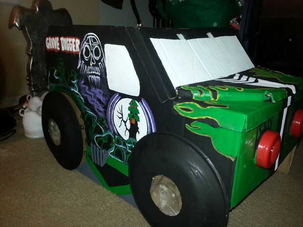 como muchos niños y niñas y muchos no tan jóvenes, mi nieto es un gran fan de Monster Trucks, con su cumpleaños que pensé que sería crear algo especial para su habitación. Un poco de browseing a través de tiendas de segunda mano y un local grande meg