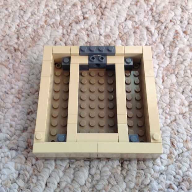 3. crear la planta anteriormente (1 y 1/3 ladrillos alto), poniendo un ladrillo de 1 x 2 con un agujero en la parte posterior.