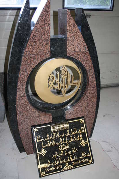La tumba construida de granito rojo y negro y la ornamentación islámica que por técnica de chorro de agua.